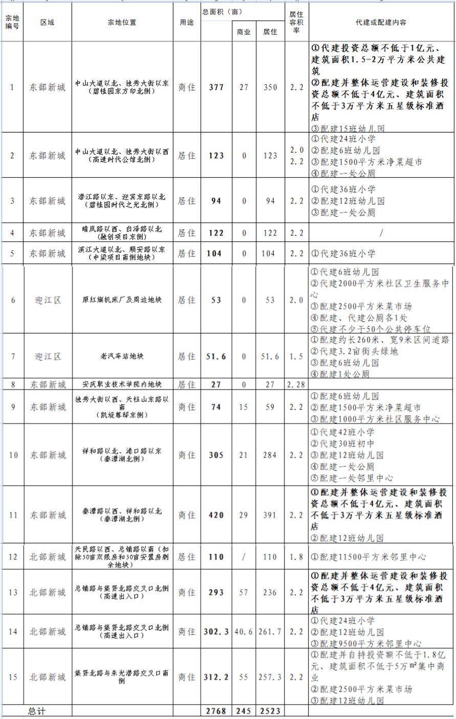 3座五星酒店、5座中小学、11座幼儿园,还有邻里中心、菜市场...,以及北部新城急缺的商业综合体,等等。安庆市2021年度拟供地公共配套和基础配套是亮点,每宗地都自带光环。
